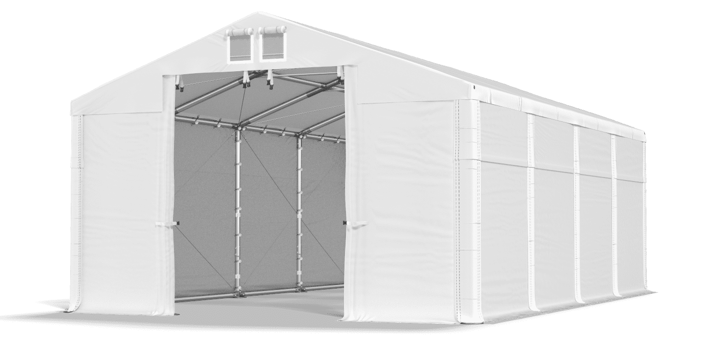 Úplné, extrémně těsné opláštění je chráněno zbožím, výnosy a vozidly uloženými ve skladovacím stanu. Tarpaulin vyrobený z pevných látek PVC s vysokou hmotností. Otečení bylo vybaveno systémem snadné změny délky Multi-size. Tarpaulin izoluje obsah skladovacího stanu z povětrnostních podmínek, jako je vítr, vlhkost, UV záření a ze znečištění. Plné opláštění bez oken znemožňuje zkontrolovat stan pro kolemjdoucí.