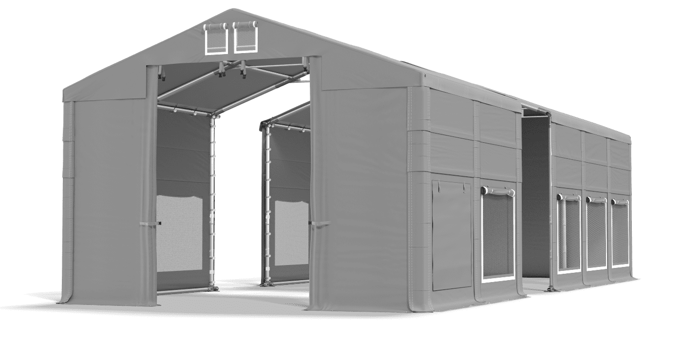 Výšky úložných a párty stanů lze rychle měnit díky modulární konstrukci, která umožňuje zvednout stan o 0,5 m nebo 1 m. Nejnižší možná výška boční stěny je 2m a nejvyšší 4m.