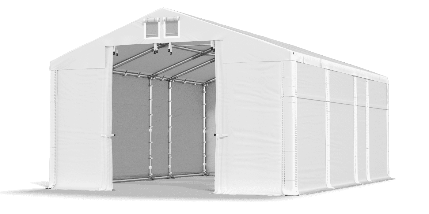 Odolný, tvrdý tarpaulin tarpaulin z PVC poskytuje bezpečné podmínky pro skladování stavebních materiálů, komerčního zboží, vozidel a zemědělských strojů. Full -bez opláštění bez oken je extrémně těsné, vodotěsné a neprochází denním světlem. Interiér skladového stanu je pro kolemjdoucí neviditelný. Jedná se o vynikající garážový stan a průmyslová hala. Tarpaulin má systém rychlé délky změny Multi-size.