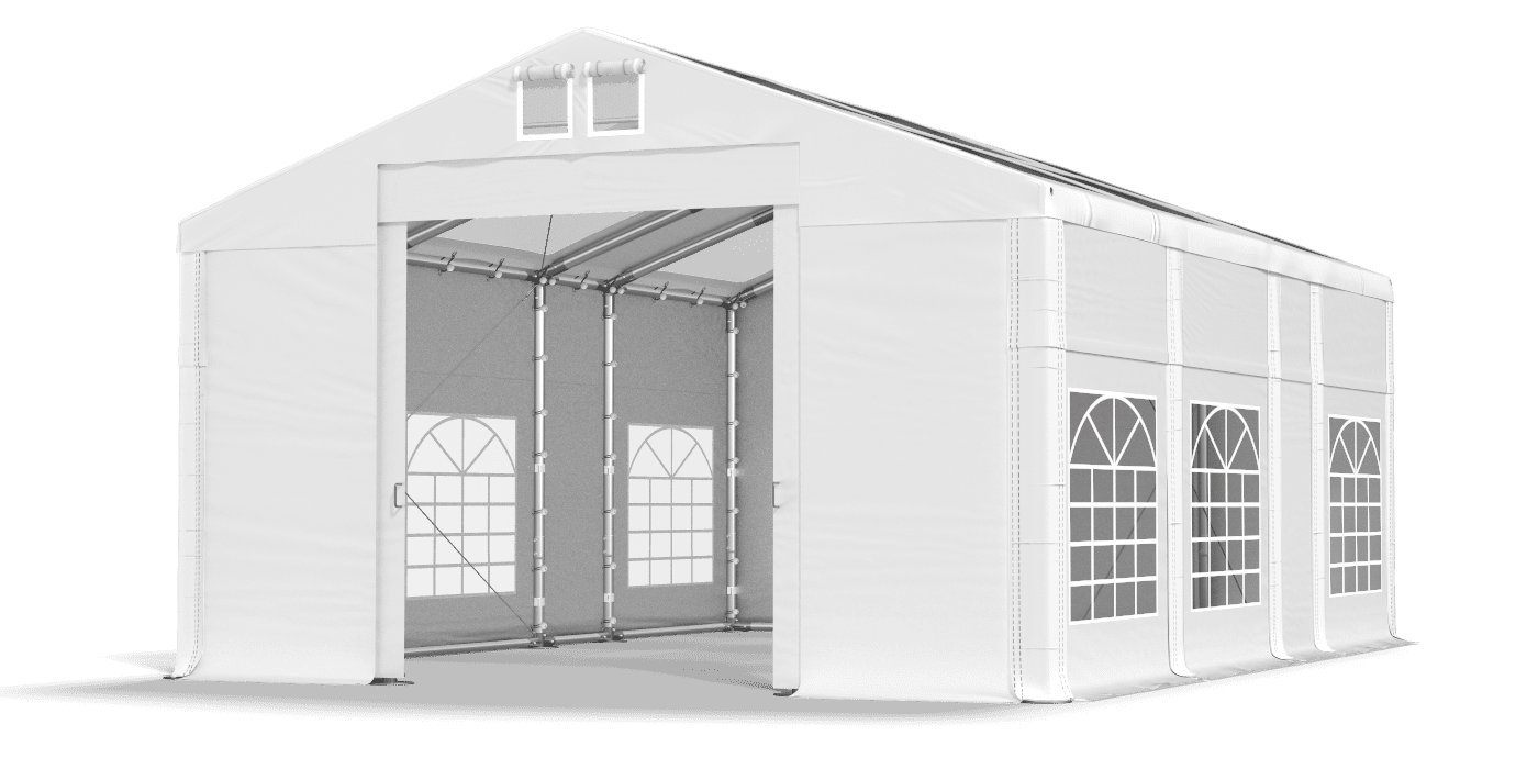 Tarpaulin vybavený okny vitráže a průhledná střecha zajišťuje optimální osvětlení stolů a bufetů během večírků ve večírku. Silné opláštění s PVC chrání před vlhkostí, větrem a UV zářením. V případě stanu můžete organizovat rodinné oslavy, firemní bankety, festivaly a výstavy. Je to také vynikající zahradní stan a komerční stan. Otečení bylo vybaveno systémem snadné změny délky Multi-size.
