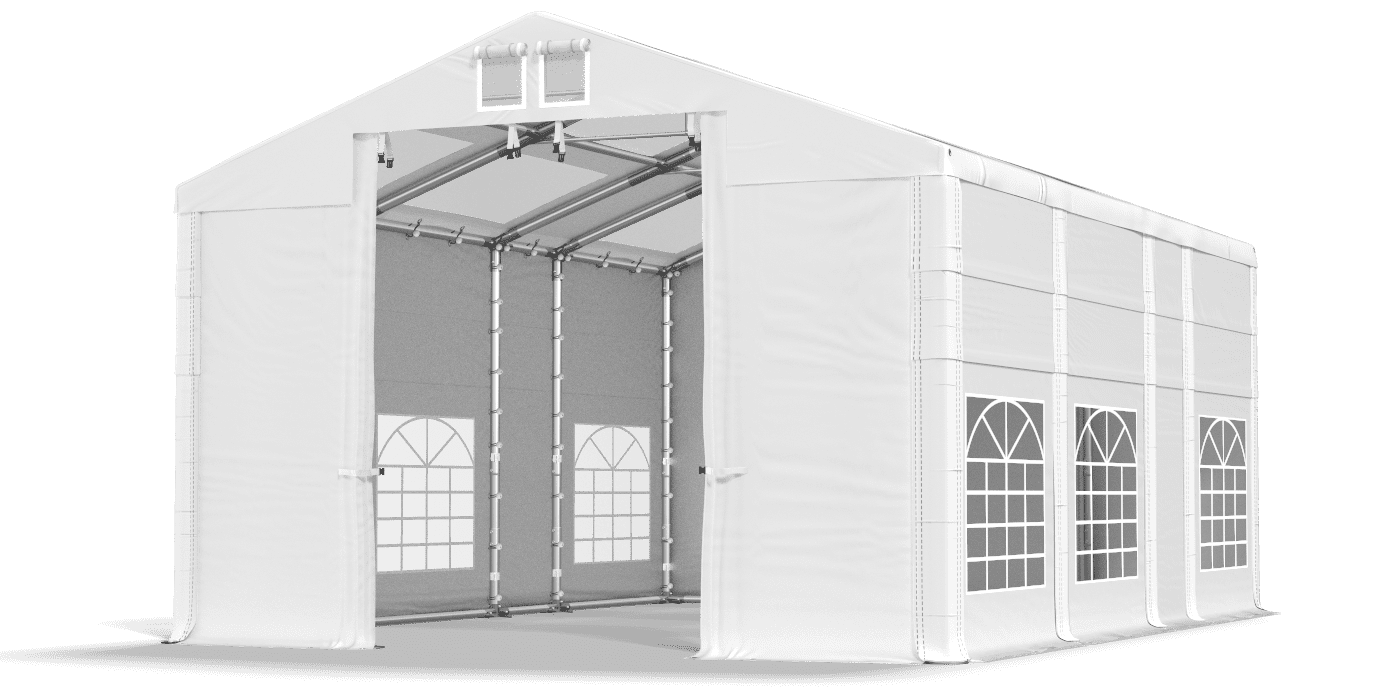 Tarpaulin vybavený okny vitráže a průhledná střecha zajišťuje optimální osvětlení stolů a bufetů během večírků ve večírku. Silné opláštění s PVC chrání před vlhkostí, větrem a UV zářením. V případě stanu můžete organizovat rodinné oslavy, firemní bankety, festivaly a výstavy. Je to také vynikající zahradní stan a komerční stan. Otečení bylo vybaveno systémem snadné změny délky Multi-size.
