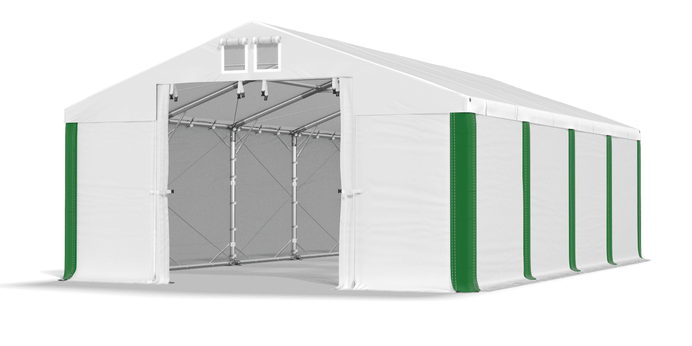 Odolný, tvrdý tarpaulin tarpaulin z PVC poskytuje bezpečné podmínky pro skladování stavebních materiálů, komerčního zboží, vozidel a zemědělských strojů. Full -bez opláštění bez oken je extrémně těsné, vodotěsné a neprochází denním světlem. Interiér skladového stanu je pro kolemjdoucí neviditelný. Jedná se o vynikající garážový stan a průmyslová hala. Tarpaulin má systém rychlé délky změny Multi-size.