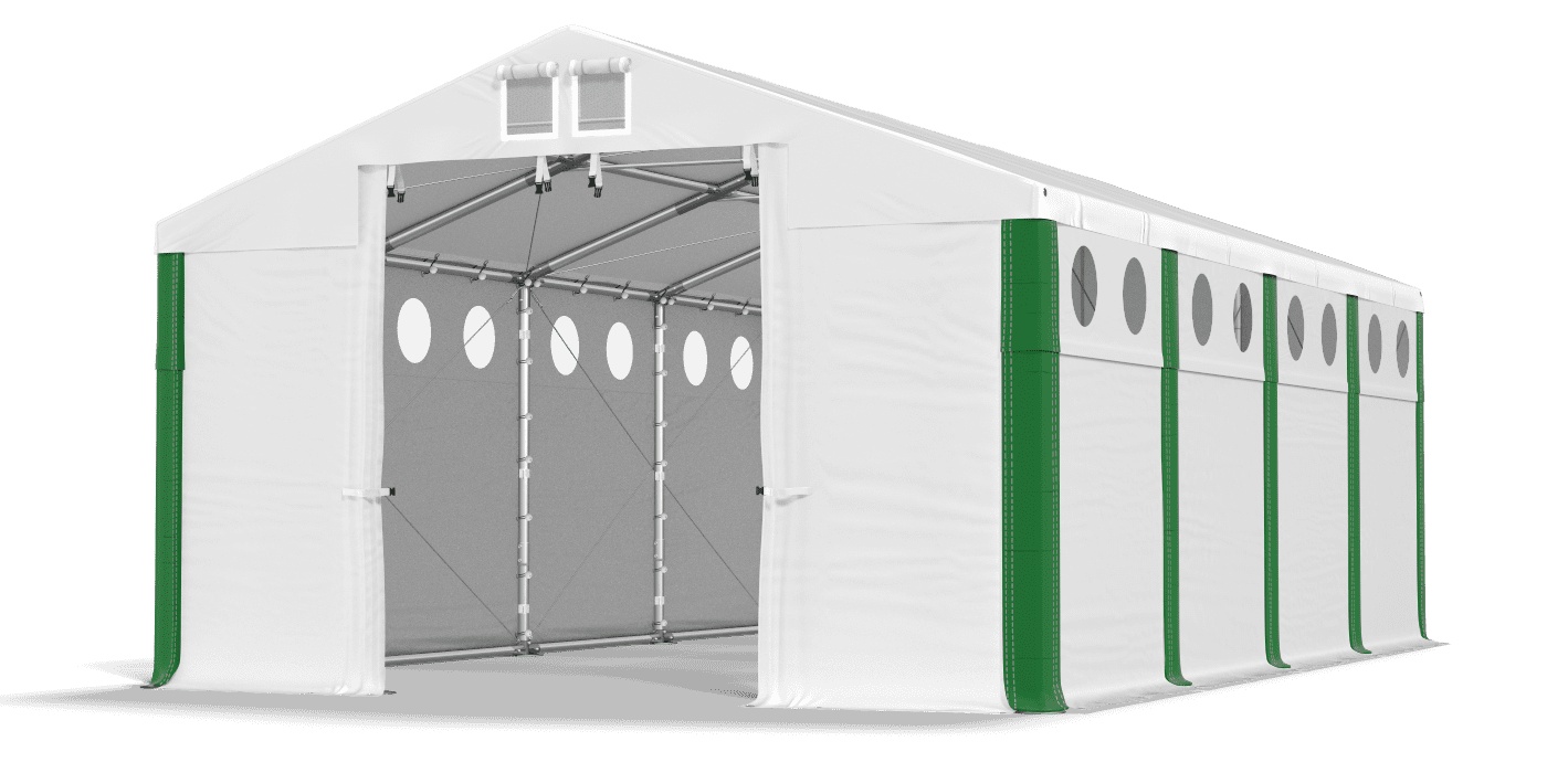 Výšky úložných a párty stanů lze rychle měnit díky modulární konstrukci, která umožňuje zvednout stan o 0,5 m nebo 1 m. Nejnižší možná výška boční stěny je 2m a nejvyšší 4m.