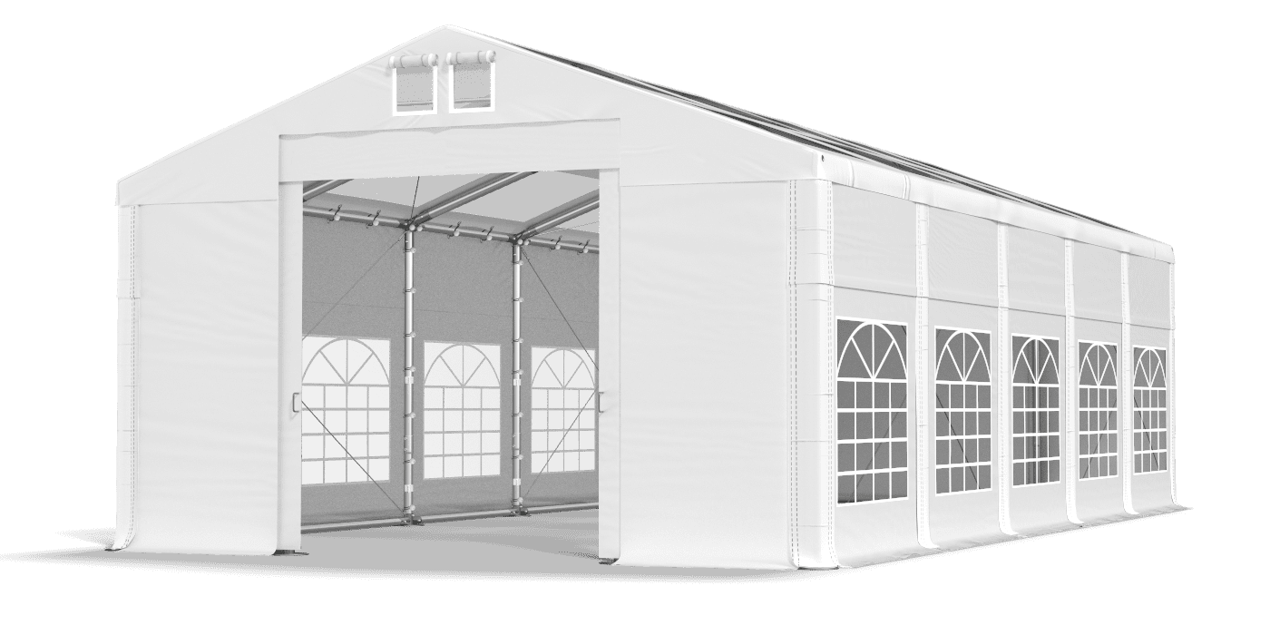Tarpaulin vybavený okny vitráže a průhledná střecha zajišťuje optimální osvětlení stolů a bufetů během večírků ve večírku. Silné opláštění s PVC chrání před vlhkostí, větrem a UV zářením. V případě stanu můžete organizovat rodinné oslavy, firemní bankety, festivaly a výstavy. Je to také vynikající zahradní stan a komerční stan. Otečení bylo vybaveno systémem snadné změny délky Multi-size.
