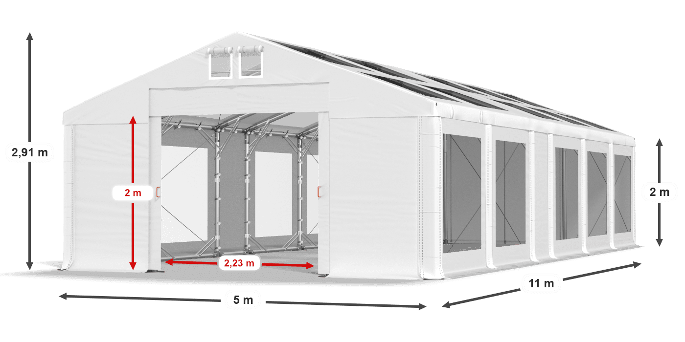 Otečení je vybaveno průhlednými stranami a střechou. Díky tomu zaručuje úplné osvětlení stanu události. Střecha může být použita v obchodě, protože umožňuje estetické zobrazení zboží. Tarpaulin je vyroben z PVC s vysokou hmotností. Díky tomu chrání tabulky a bufety před větrem, vlhkostí a vnějším znečištěním. Jedná se o vynikající zahradní stan a výstavní stan. Otečení bylo vybaveno systémem snadné změny délky Multi-size.