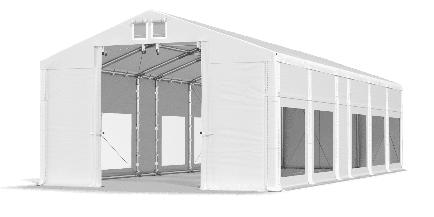 Boční stěna je vyrobena ze silné plachty PVC cca. 580 g/m2. Díky průhledné boční stěně působí stan esteticky. Skvěle se hodí jako komerční, výstavní nebo párty stan