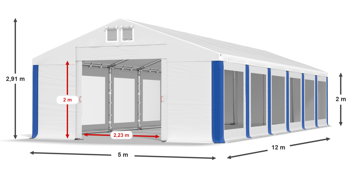 Stan 5m x12m 2m se skládá ze stanů o rozměrech: 5x6m.