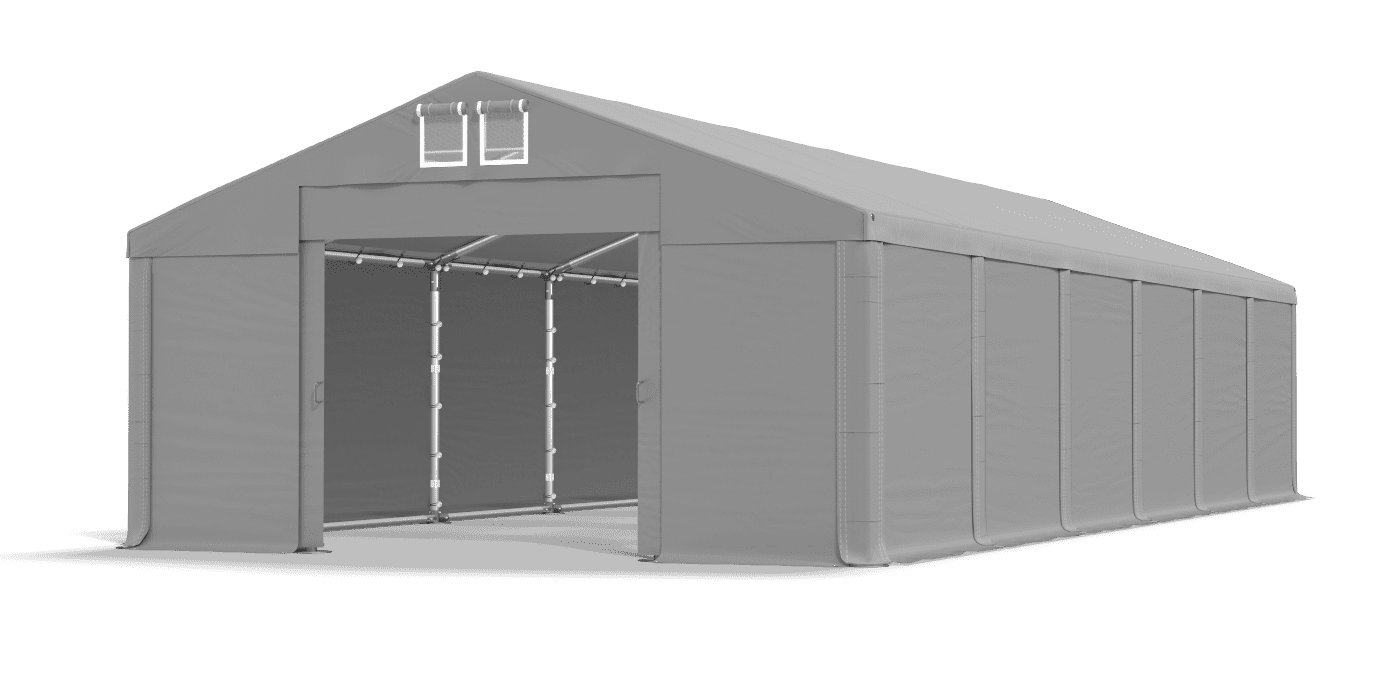 Úplný a odolný plachta z PVC poskytuje bezpečný prostor pro skladování zboží, garáží a skladování plodin. Pod střechou můžeme udržovat stavební materiály, suroviny, zahradní nábytek a sportovní vybavení. Opád je vodotěsný, těsný a odolný vůči UV záření. Boční stěny se dodržují dokonale k sobě a nemají okna, a proto je interiér úložného stanu neviditelný z vnějšku. Tarpaulin byl vybaven systémem snadné změny v délce Multi-size.