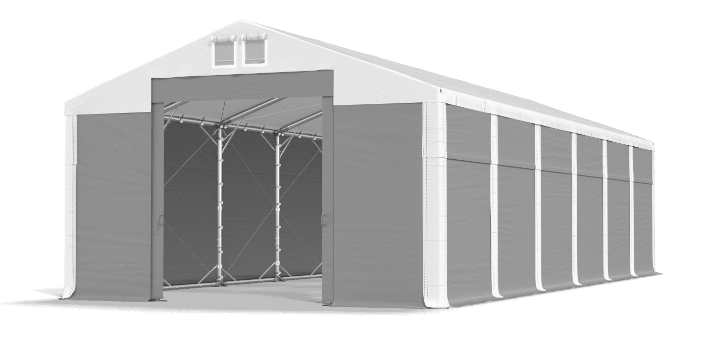 Plná plachta vyrobená ze silných a odolných PVC chrání zboží uložené v úložném stanu. Opád je vodotěsný, těsný a odolný vůči UV záření. Ve stanové hale můžeme ukládat stavební materiály, suroviny, sportovní vybavení a dokonce i vozidla. Zastřešení nemá žádná okna, a proto chrání obsah garážového stanu před očima kolemjdoucích. Tarpaulin má systém rychlé délky změny Multi-size.