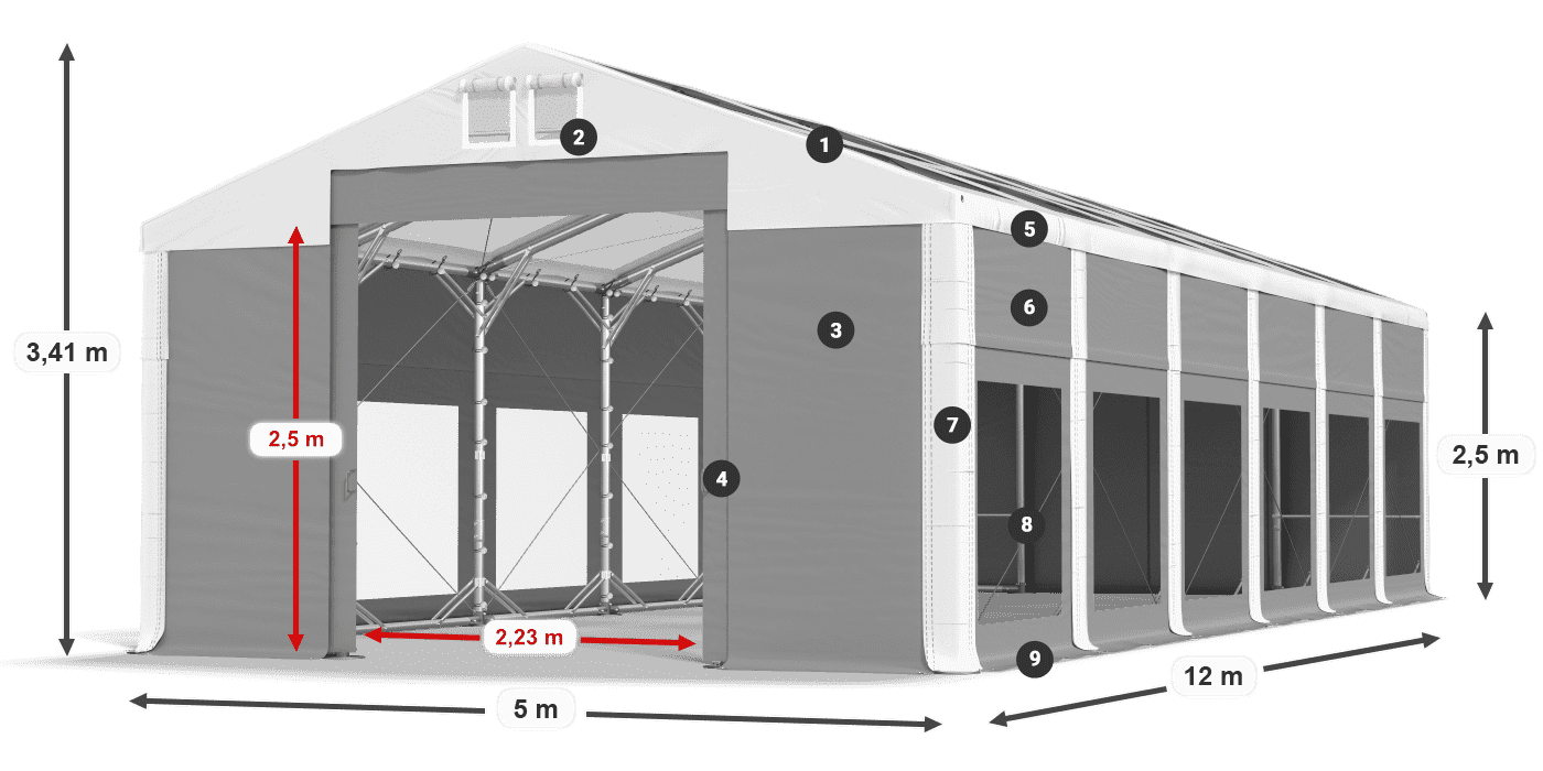 Otečení je vybaveno průhlednými stranami a střechou. Díky tomu zaručuje úplné osvětlení stanu události. Střecha může být použita v obchodě, protože umožňuje estetické zobrazení zboží. Tarpaulin je vyroben z PVC s vysokou hmotností. Díky tomu chrání tabulky a bufety před větrem, vlhkostí a vnějším znečištěním. Jedná se o vynikající zahradní stan a výstavní stan. Otečení bylo vybaveno systémem snadné změny délky Multi-size.