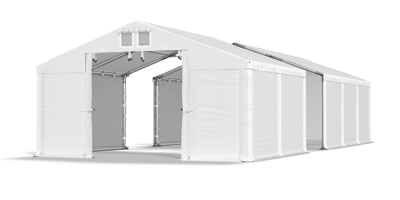 Úplný a odolný plachta z PVC poskytuje bezpečný prostor pro skladování zboží, garáží a skladování plodin. Pod střechou můžeme udržovat stavební materiály, suroviny, zahradní nábytek a sportovní vybavení. Opád je vodotěsný, těsný a odolný vůči UV záření. Boční stěny se dodržují dokonale k sobě a nemají okna, a proto je interiér úložného stanu neviditelný z vnějšku. Tarpaulin byl vybaven systémem snadné změny v délce Multi-size.