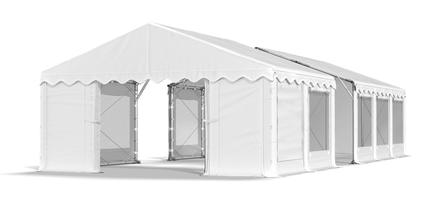 Vzdušný tarpaulin PE byl vybaven velkými okny s síťmi komárů. Zastřešení bude v létě perfektní, protože zajistí tok čerstvého vzduchu a zároveň chrání stoly a bufety před létajícím hmyzem. Okna vyvinula žaluzie, které můžeme v případě chlazení utěsnit sítí komárů. Při organizování venkovních akcí, rodinných pikniků a obchodních večírků můžeme použít stan s komáry.