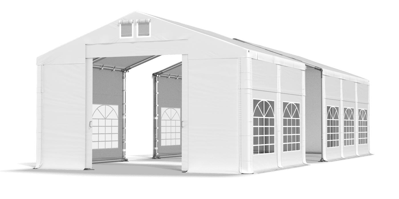 Odolný plachta s okny z vitráže, chrání stoly a bufety před vlhkostí, větrem a UV zářením. Opláštění je vyrobeno ze silného PVC. Elegantní okna z barevného skla jsou dekorací večírku a poskytují také hodně přirozeného světla. Bleghtningové opláštění zvyšuje bezpečnost při používání stanu pro gastronomické a cateringové účely. Tarpaulin má systém rychlé délky změny Multi-size.