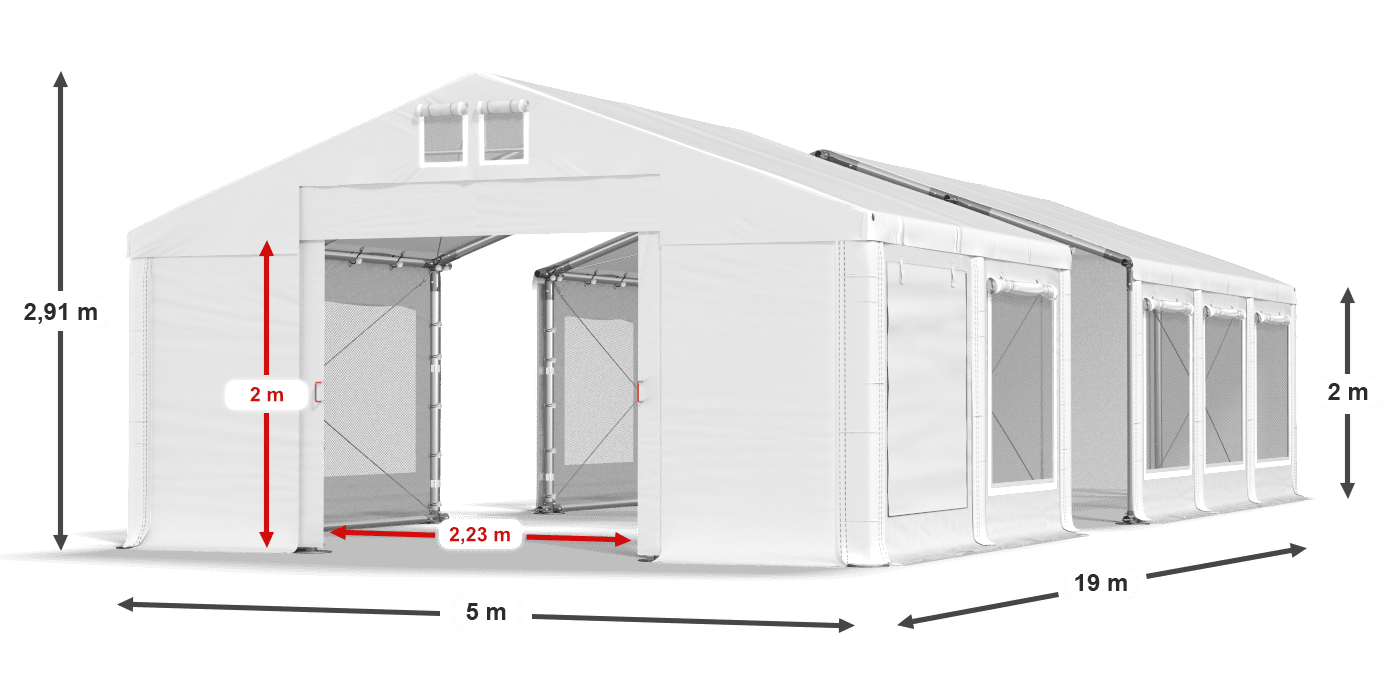 Výšky úložných a párty stanů lze rychle měnit díky modulární konstrukci, která umožňuje zvednout stan o 0,5 m nebo 1 m. Nejnižší možná výška boční stěny je 2m a nejvyšší 4m.