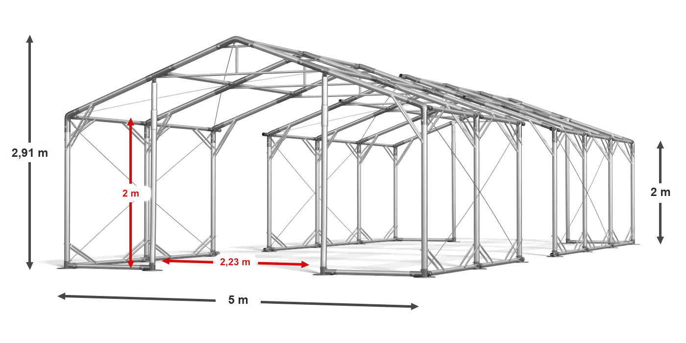 Na všech bočních stěnách byly použity přídavné horní a spodní příčné podpěry. Díky nim je stan maximálně odolný proti silnému a nárazovému větru. Je to nejúčinnější způsob ochrany proti takovým povětrnostním vlivům.