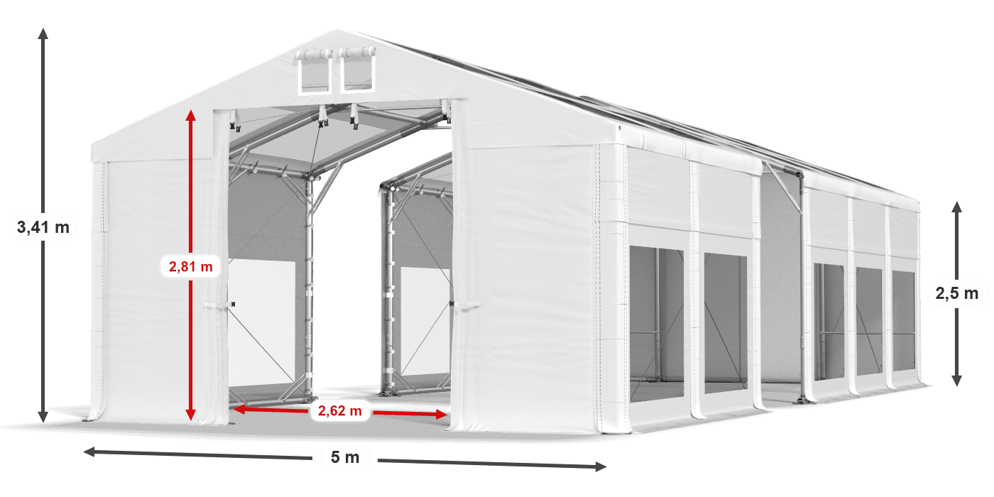 Výšky úložných a párty stanů lze rychle měnit díky modulární konstrukci, která umožňuje zvednout stan o 0,5 m nebo 1 m. Nejnižší možná výška boční stěny je 2m a nejvyšší 4m.