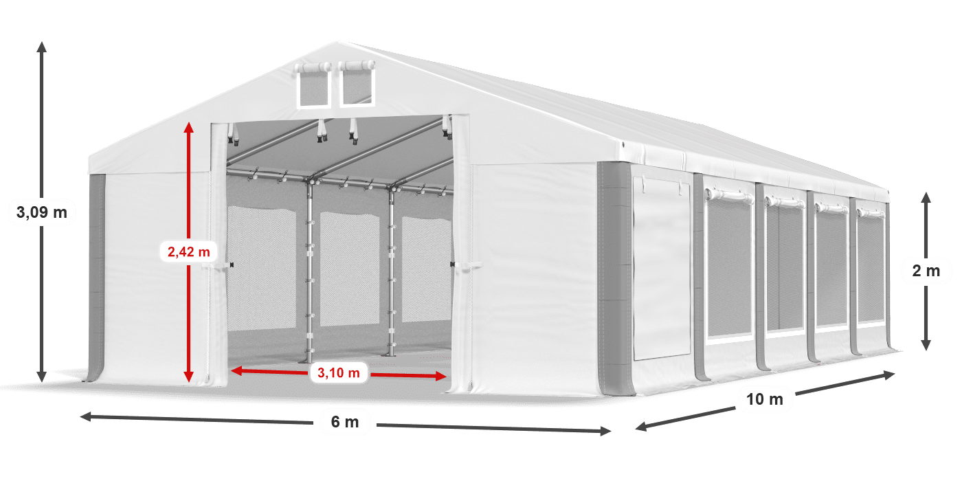 Tarpaulin s okny vybavenými sítěmi komárů zajišťuje tok čerstvého vzduchu v horkých dnech. Otevřeno je odolné vůči vlhkosti a UV záření, a proto může být použity během organizace venkovních rodinných a firemních večírků. Sítě komárů jsou extrémně vzdušné a zároveň chrání stoly a bufety před létajícím hmyzem. V případě ochlazení okna můžeme zakryt žaluzie, které utěsňuje stan večírku.