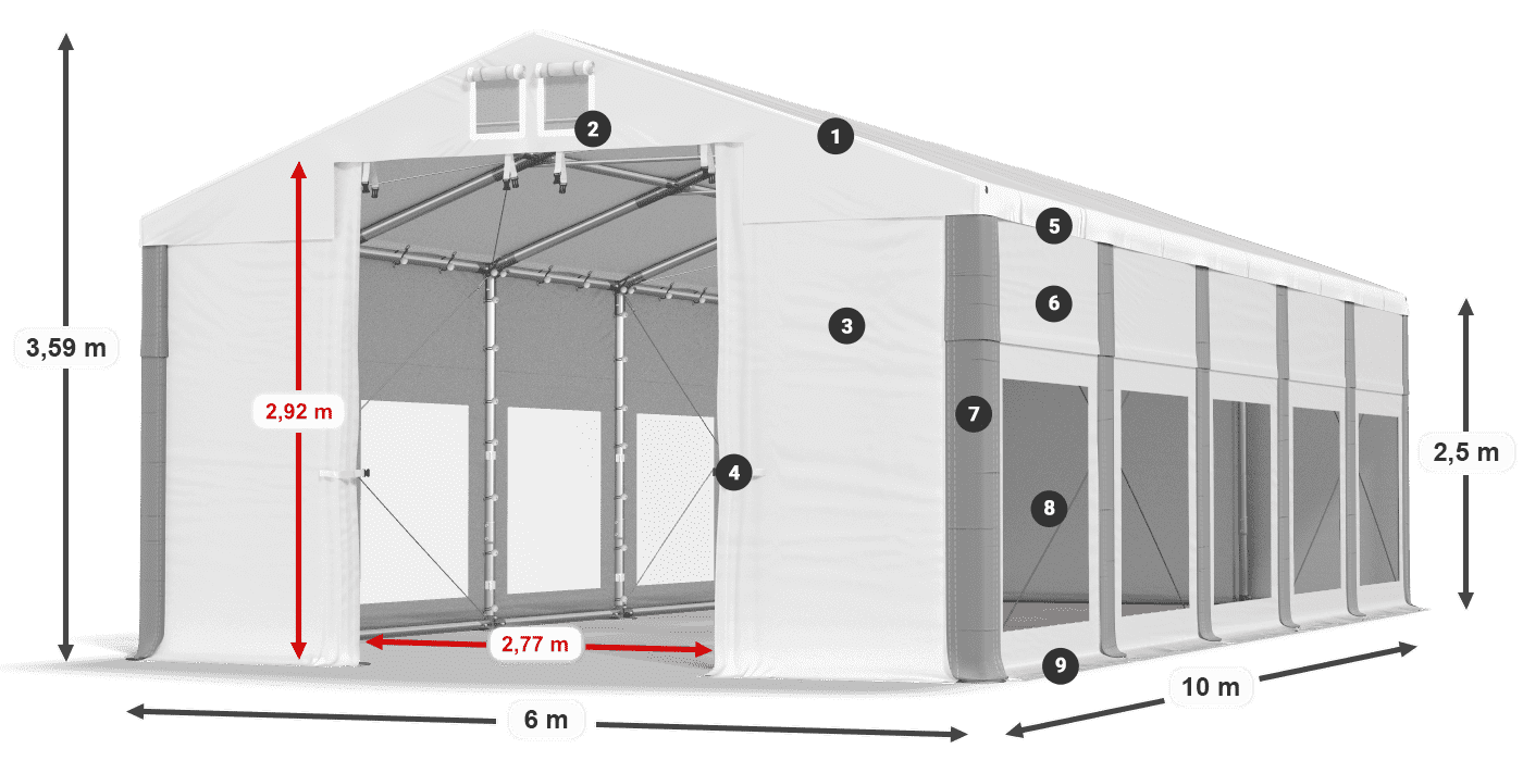 Bách vybavené průhlednými stranami je vyrobeno z PVC s vysokou hmotností. Tarpaulin je vodotěsný a odolný vůči UV záření, a proto při organizaci rodinných akcí a obchodních večírků zaručuje suchý a stinný prostor. Transparentní boční stěny poskytují perfektní osvětlení stolů a bufetů. Je to také vynikající komerční stan a altán. Tarpaulin má systém rychlé délky změny Multi-size.