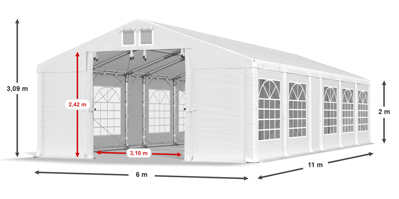Odolný plachta s okny z vitráže, chrání stoly a bufety před vlhkostí, větrem a UV zářením. Opláštění je vyrobeno ze silného PVC. Elegantní okna z barevného skla jsou dekorací večírku a poskytují také hodně přirozeného světla. Bleghtningové opláštění zvyšuje bezpečnost při používání stanu pro gastronomické a cateringové účely. Tarpaulin má systém rychlé délky změny Multi-size.