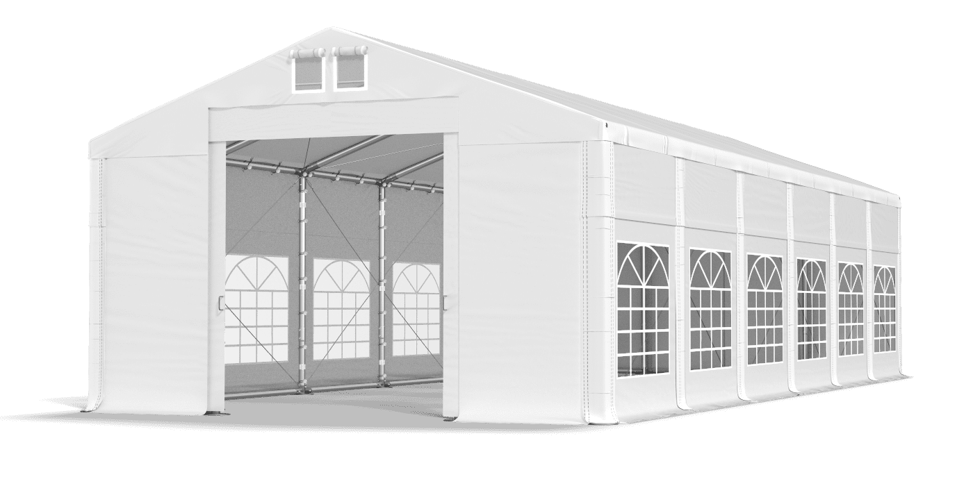 Odolný plachta s okny z vitráže, chrání stoly a bufety před vlhkostí, větrem a UV zářením. Opláštění je vyrobeno ze silného PVC. Elegantní okna z barevného skla jsou dekorací večírku a poskytují také hodně přirozeného světla. Bleghtningové opláštění zvyšuje bezpečnost při používání stanu pro gastronomické a cateringové účely. Tarpaulin má systém rychlé délky změny Multi-size.