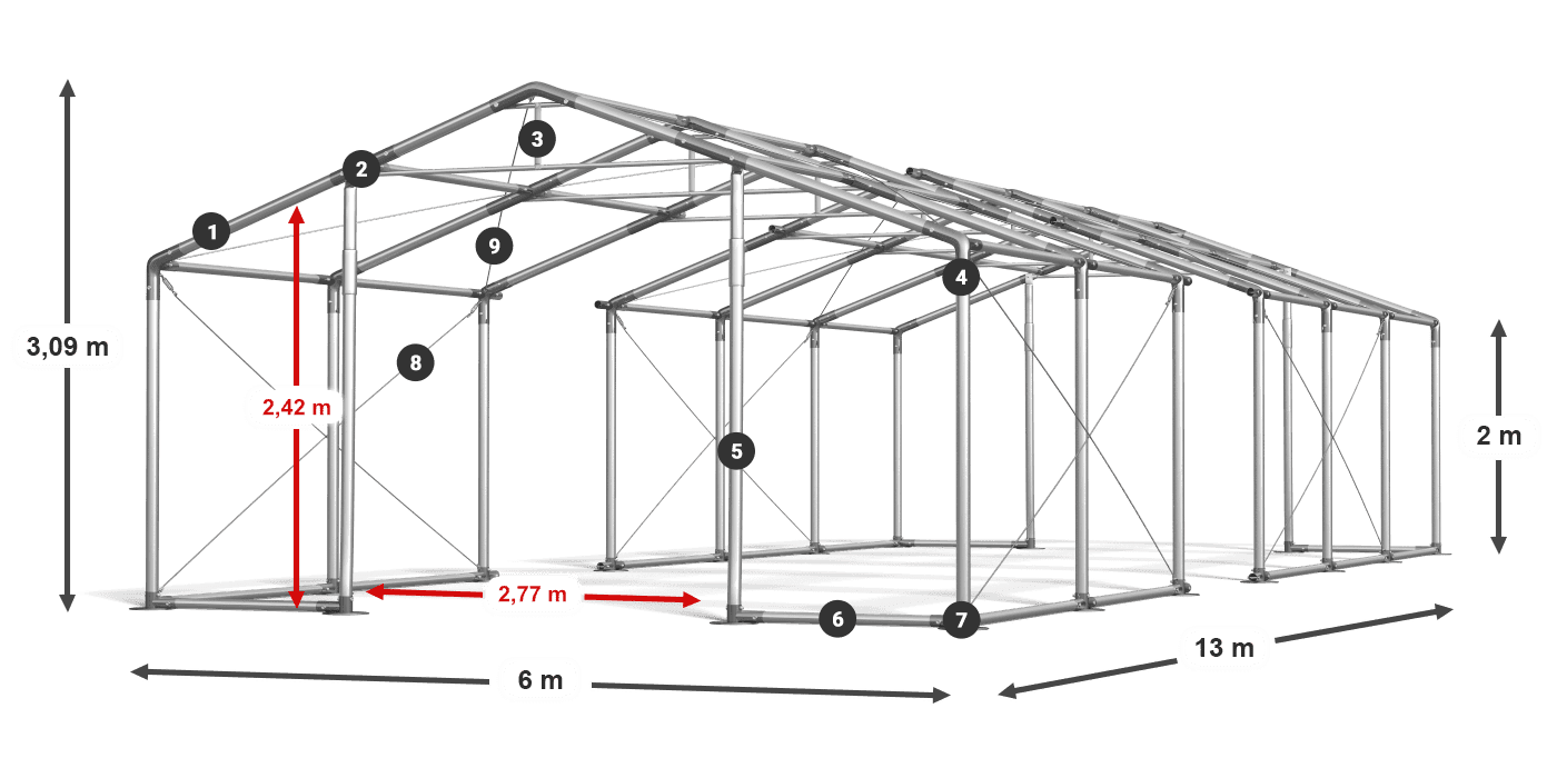 Tarpaulin vybavený okny vitráže a průhledná střecha zajišťuje optimální osvětlení stolů a bufetů během večírků ve večírku. Silné opláštění s PVC chrání před vlhkostí, větrem a UV zářením. V případě stanu můžete organizovat rodinné oslavy, firemní bankety, festivaly a výstavy. Je to také vynikající zahradní stan a komerční stan. Otečení bylo vybaveno systémem snadné změny délky Multi-size.