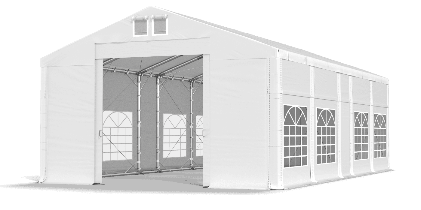 Silné opláštění okny z barevného skla chrání stoly a bufety před vlhkostí a větrem. Uzavřený plachta z PVC je odolný vůči UV záření, a proto poskytuje suchý a stinný prostor. Ve večírku můžeme organizovat rodinné večírky, komunální festivaly a firemní bankety. Je to také vynikající zahradní stan a komerční stan. Elegantní tarpaulin je vybaven systémem snadné změny délky Multi-size.
