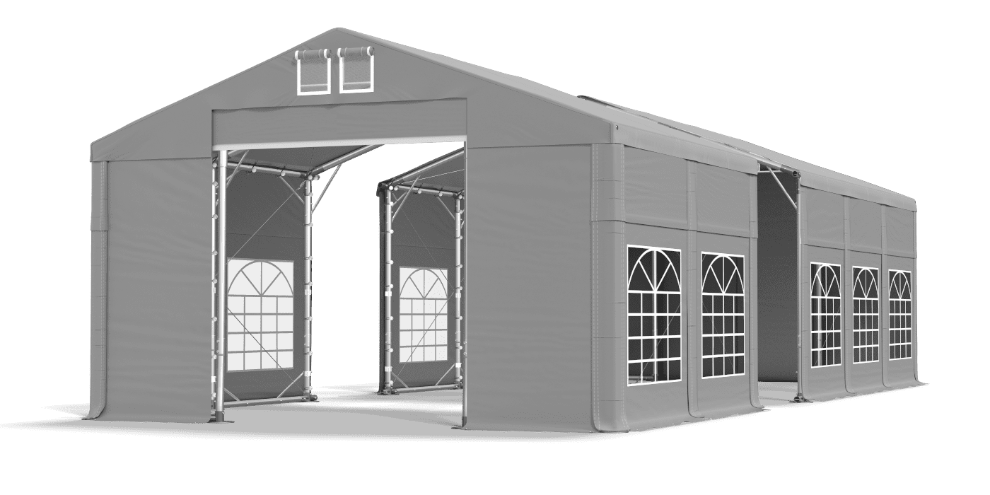 Silné opláštění okny z barevného skla chrání stoly a bufety před vlhkostí a větrem. Uzavřený plachta z PVC je odolný vůči UV záření, a proto poskytuje suchý a stinný prostor. Ve večírku můžeme organizovat rodinné večírky, komunální festivaly a firemní bankety. Je to také vynikající zahradní stan a komerční stan. Elegantní tarpaulin je vybaven systémem snadné změny délky Multi-size.